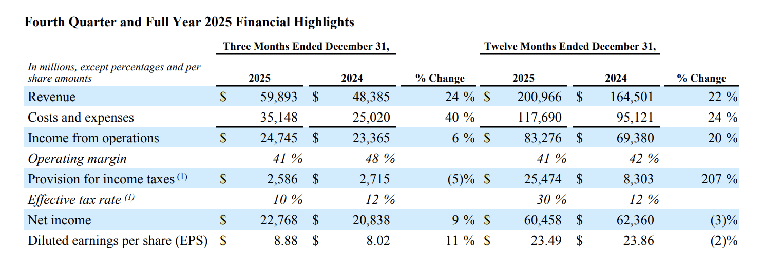 [Ebrun Original] January 29 - Meta released its financial results for the fourth quarter of fiscal year 2025. The report shows that Meta's Q4 revenue reached $59.893 billion, a 24% year-over-year increase, surpassing market expectations of $58.45 billion. Net profit was $22.768 billion, up 9% year-over-year.