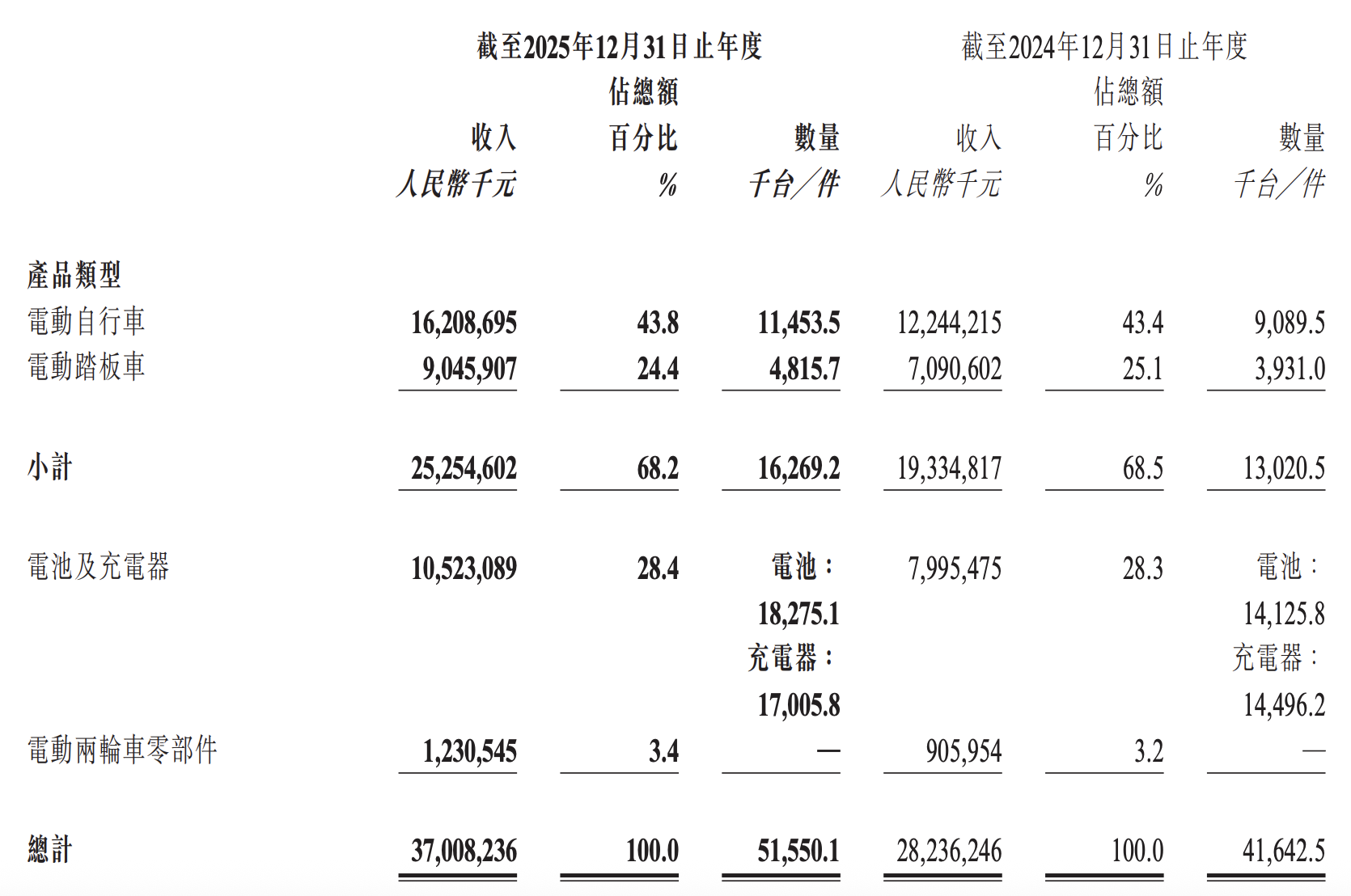 In terms of sales volume, the total sales of electric scooters and electric bicycles increased from approximately 13 million units in 2024 to about 16.3 million units in 2025. Specifically, electric bicycle sales reached 11.45 million units in 2025, a 26.0% increase from 9.08 million units in 2024. Electric scooter sales were 4.81 million units in 2025, up 22.5% from 3.93 million units in 2024.