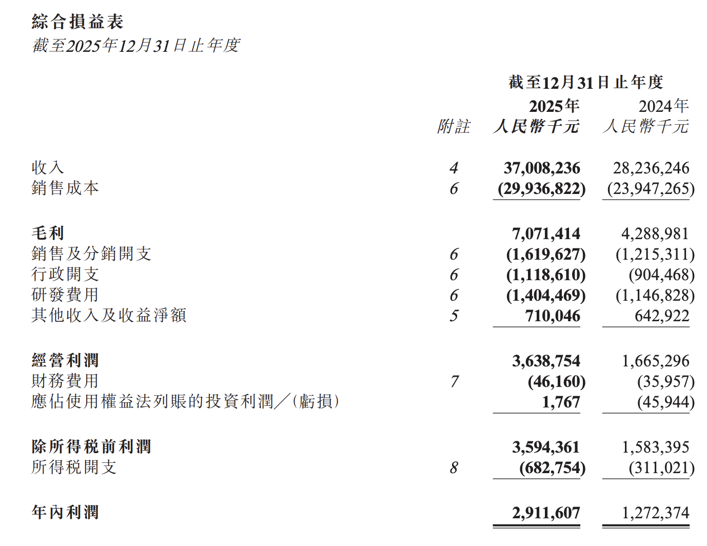 [Ebrun Exclusive] Yadea Group Holdings (01585) recently released its financial results for the year ending 2025. The company reported revenue of approximately RMB 37.008 billion, a year-on-year increase of 31.1%. Profit attributable to owners of the company soared 128.8% to RMB 2.912 billion, with basic earnings per share rising approximately 127.0% to 95.8 cents, completely reversing the decline in both revenue and profit experienced in 2024. Following the earnings release, the capital market reacted positively, with the stock price rising 5.19% in a single day to HK$12.77, and turnover reaching HK$185 million.